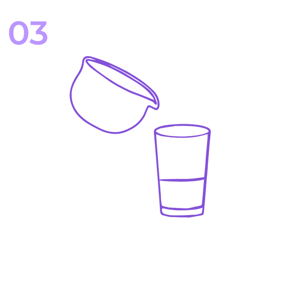 - 30 secondes : 2 cuillères d'ube + eau chaude dans le bol